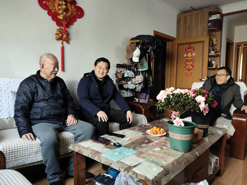 在老干部家中,侯连涛、张文斗、刘永德、周吉学、李庆刚一行与老同志们促膝谈心、亲切交流,详细询问他们的身体、家庭情况和生活需求; 向老同志们详细介绍校(院)2025年取得的成绩和学部发展的成果,并耐心听取他们的意见和建议。同时,感谢他们对校(院)和学部工作的关心和大力支持,真诚希望各位老专家保重身体,生活幸福美满。